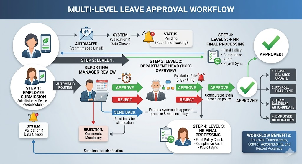 Leave Management Module is a key component of HR software that helps organizations efficiently manage employee leave processes. It allows employees to apply for leave, check balances, and track requests, while managers can review and approve them seamlessly. The module automates calculations, enforces company policies, and reduces paperwork, ensuring accuracy, transparency, and better workforce planning.
