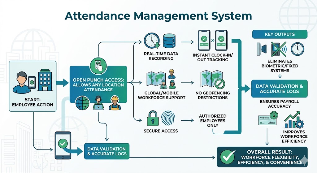 Defines virtual boundaries for employee check-ins and attendance tracking.