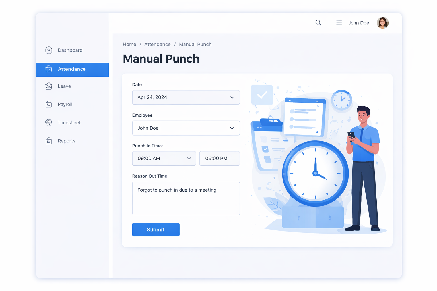 Generates real-time daily, weekly, and monthly reports for employees and HR.